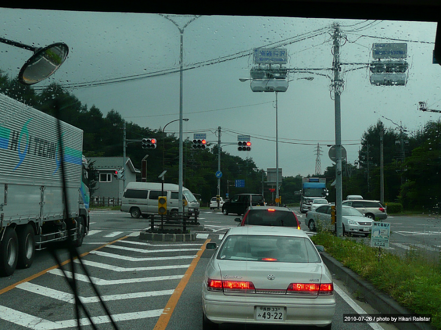 [사진 473. 차가 많이 늘어났죠? 지금 미나미카루이자와 교차로에 신호대기 중입니다.]