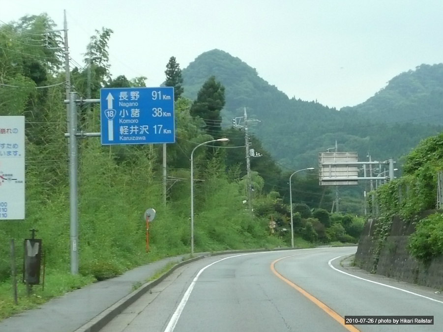[사진 461. 이제 국도 18호선을 따라 이동합니다. 카루이자와까지는 17km.]