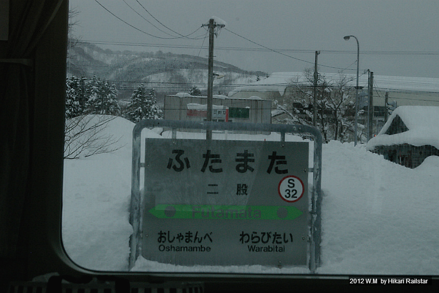 [사진 1216. 첫 정차역은 후타마타역입니다. 1903년에 개업한 1면 1선의 무인역으로 역 번호는 S32입니다. 역 이름은 아이누어 페타누(ベタヌ)에서 유래했다고 하는데요 오샤만베가와와 치라이가와가 합류하는 두 갈래를 지칭한다고 합니다.]