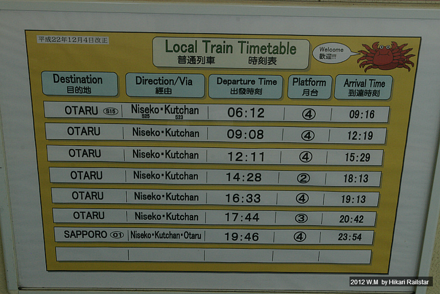 [1200. 오타루 방면의 열차시각표인데요 아주 없는 것 같지는 않은데 그렇다고 해서 만만하게 맞출 수 있는 시간도 아닙니다. 이 노선이 바로 니세코를 경유하는 하코다테본선 "산선" 구간으로, 제가 다음에 탈 노선입니다.]