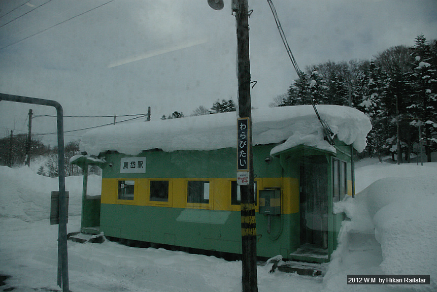 [사진 1219. 다음 역인 와라비타이역도 차장차를 개조한 대합실을 가지고 있습니다.]