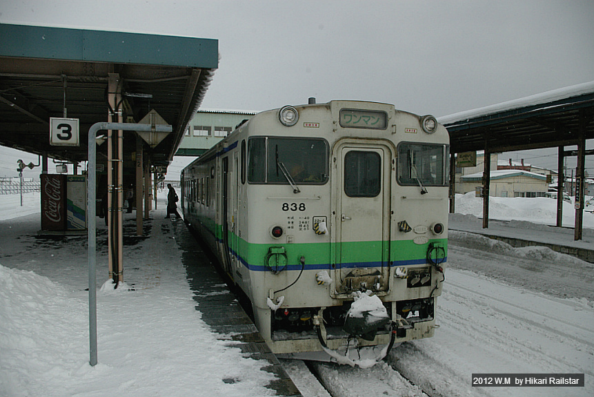 JR홋카이도 하코다테본선 보통 821D 쿤누이역 도착/출발 - 오샤만베(종점) 11:31 도착 [키하40-838]