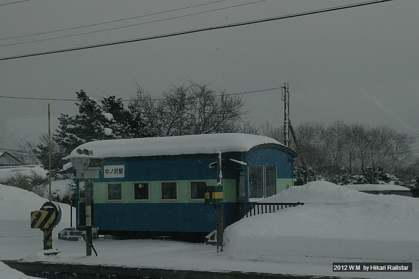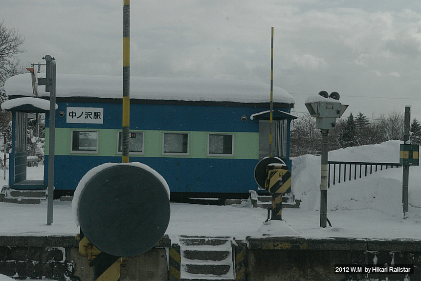 [사진 1193. 나카노사와역은 1904년에 개업한 2면 3선 구조의 무인역입니다. 과거에는 제대로 된 역 건물이 있었습니다만 1987년에 철거하고 요3500형 차장자를 개조한 대합실을 설치했습니다.]