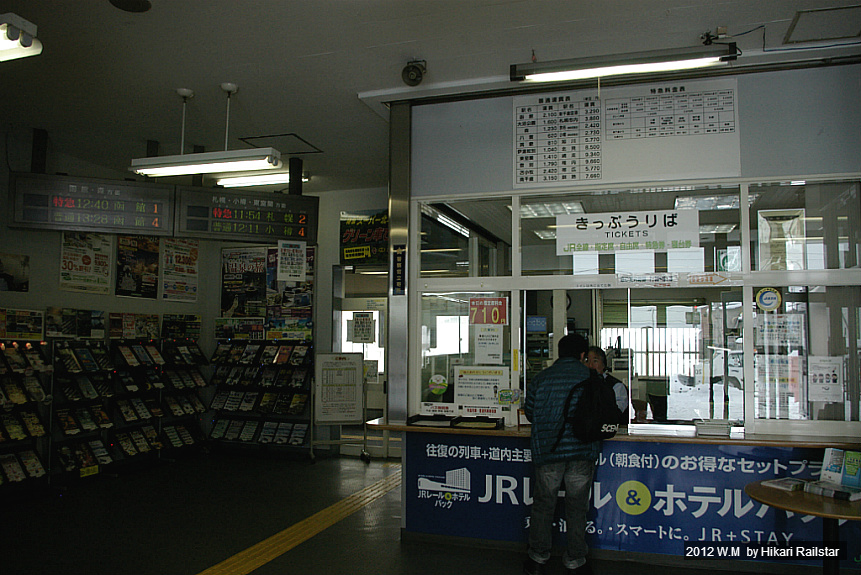 [사진 1207. 오샤만베역은 대합실도 단촐합니다. 저 창구가 미도리노마도구치의 역할도 하기 때문에 패스를 이용한 지정권 발권도 가능합니다. 오늘의 지정권 가격은 710엔이네요. 홋카이도는 날짜에 따라 지정권 가격이 다르며 창구에서는 매일 이를 표시하고 있습니다.]