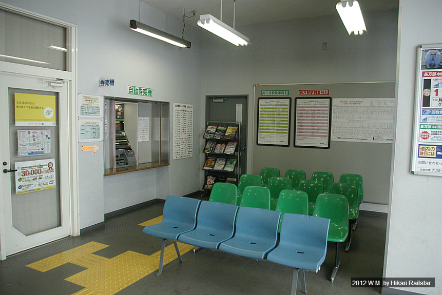 [사진 1210. 대합실의 의자는 총 16석이 있고, 그 옆에 자동발매기가 1대 있습니다.]