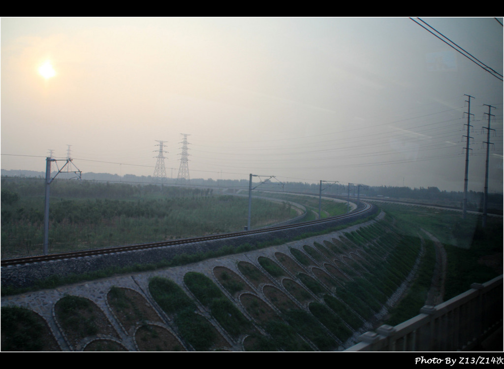 징후 고속철도 고속선에서 해가 서서히 지는 풍경입니다...원래 계획이었다면은 텐진-베이징남 부근에서 볼수 있었는데..징후 대 연착으로 지난서-창저우서 구간에서 둘러 봅니다..그리고 밤에 아무것도 안보이는 풍경에서 징후 고속철도를 탔어야 했습니다....그런데 큰 경험이라고 생각하고 그냥 받아들였습니다..단 다른 철도 출사에 영향만 안주면 된다는 생각이었기 때문에....