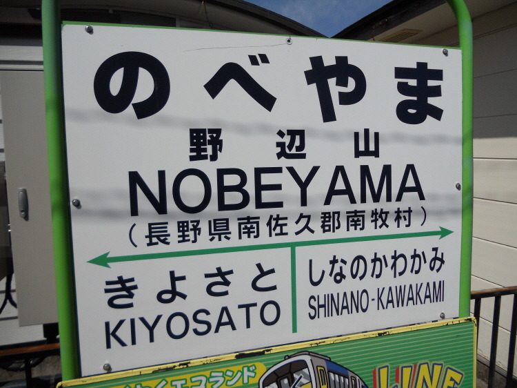 노베야마역명판입니다. 신슈나 나가노 지역은 특이하게도 역명판에 역이 위치한 곳의 행정구역이 적혀 있습니다.