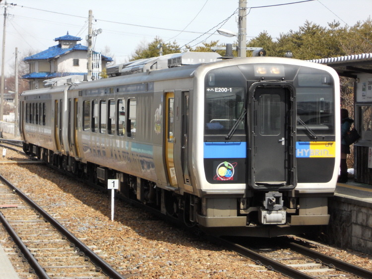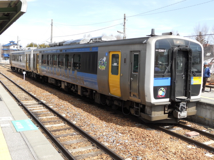 앗! 반대편에서 코부치자와행으로 E200계 열차가 입선하고 있습니다.