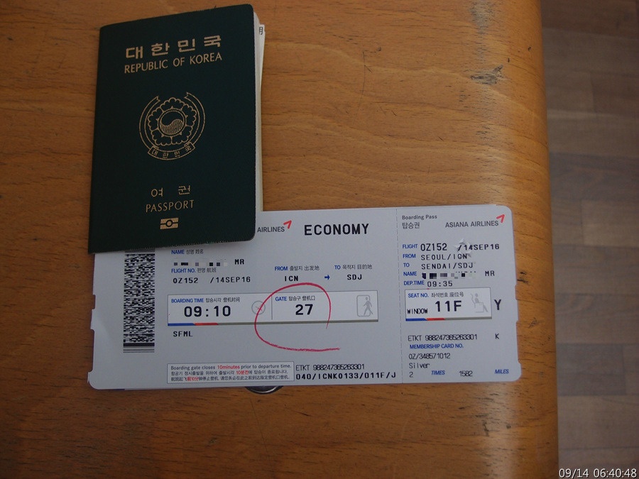 [사진 005] 1시간을 기다려서 받은 센다이행 항공권입니다.