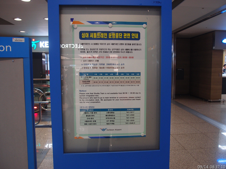 [사진 009] 탑승동을 오가는 셔틀트레인이 심야시간대에 시스템 정비 공사로 운행을 중단한다고 합니다.
