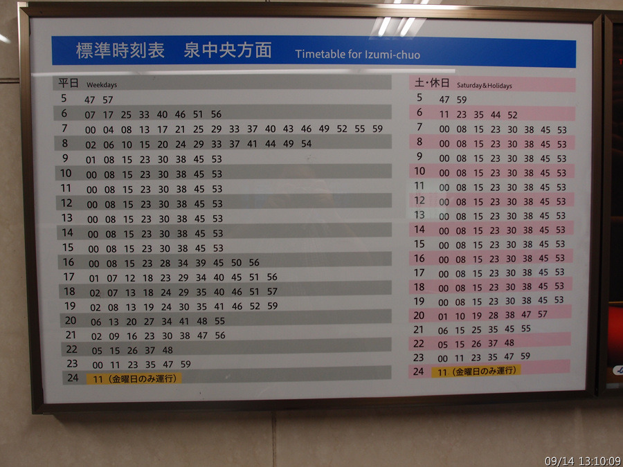센다이 지하철의 특징(?) 이라면 금요일에는 운행시간이 더 길어지는데요. 금요일의 경우는 평일 다이아+막차 추가 편성으로 평소보다 막차 시각이 12분 정도 늦습니다.