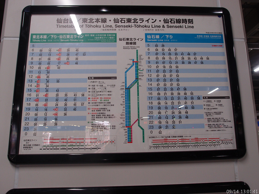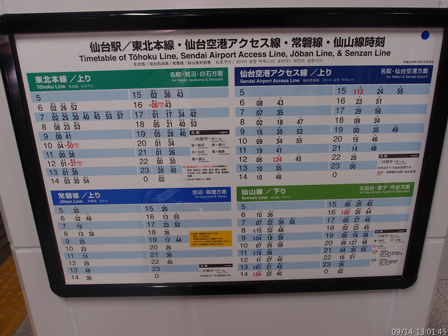 [사진 039] 센다이역 기준으로 난보쿠선의 운행 시각표입니다.
