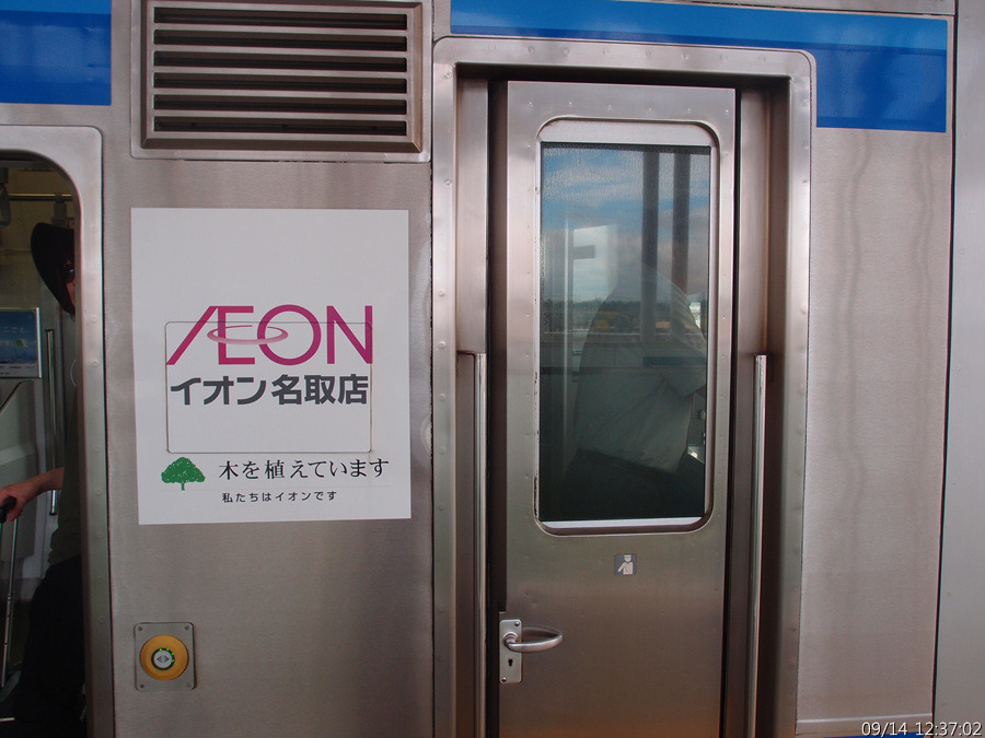 열차 앞면에는 이온몰 나토리점의 광고가 붙어있네요.. 이온몰 나토리점은 이 다음역인 모리세키노시타역에서 바로 갈 수 있지요.