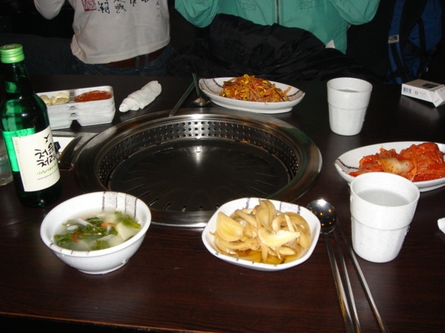 준비해간 맥주도 마시면서... 가운데 빨간색은 한국에서 가져간 고추장입니다.