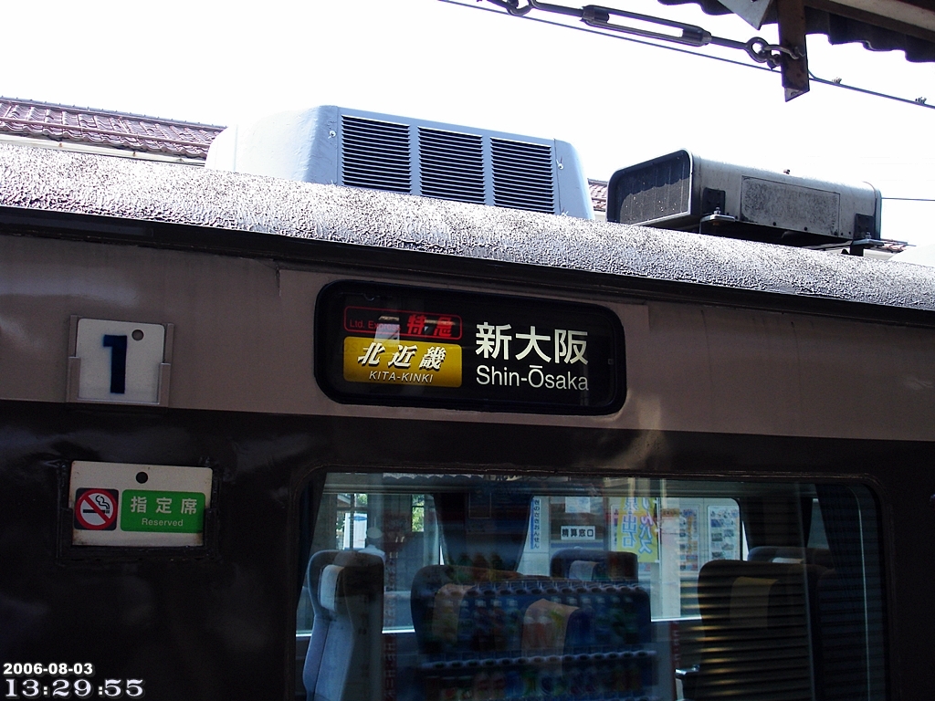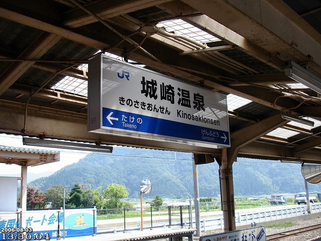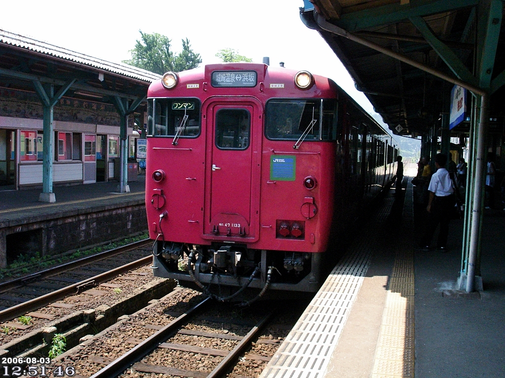 조금 더 달리니 열차의 종점인 기노사키온센역에 도착했습니다. 바로 옆에는 신오사카행 특급 기타긴키가 정차해 있습니다.