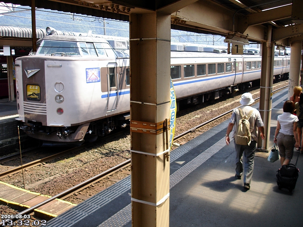 특급 하마카제와 교행합니다. 당시에는 키하181계가 운행되었습니다.