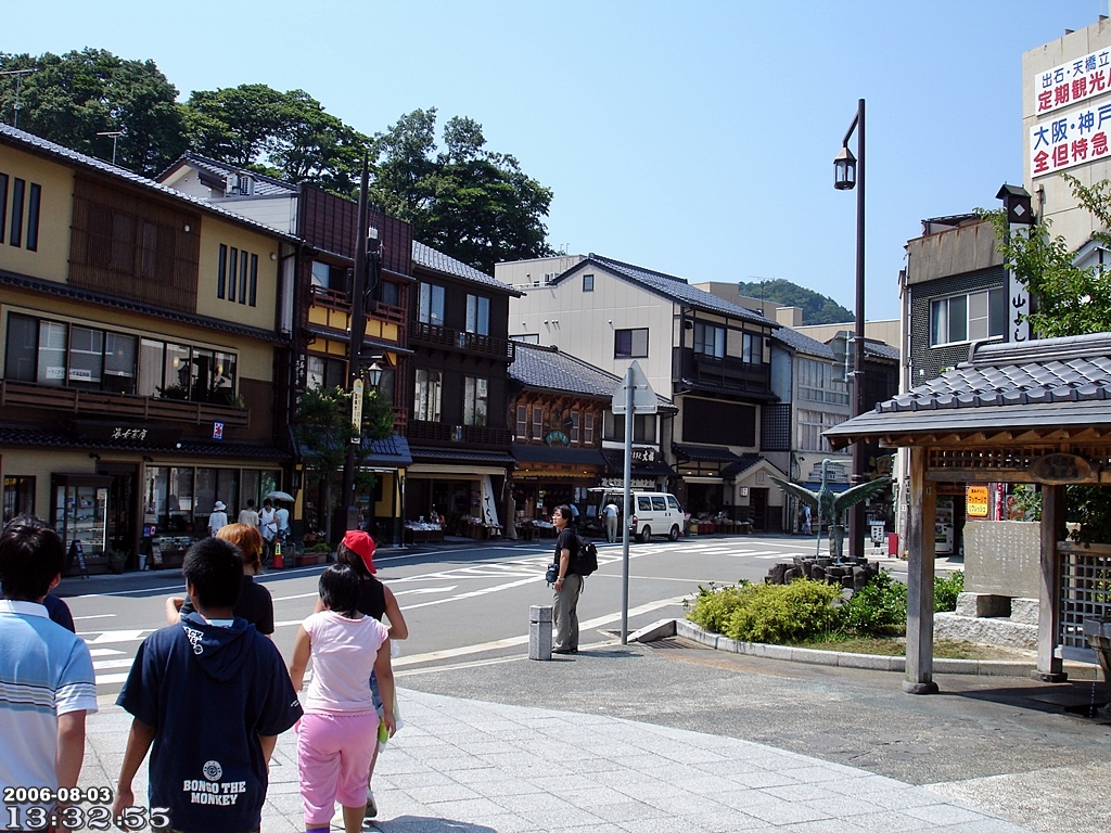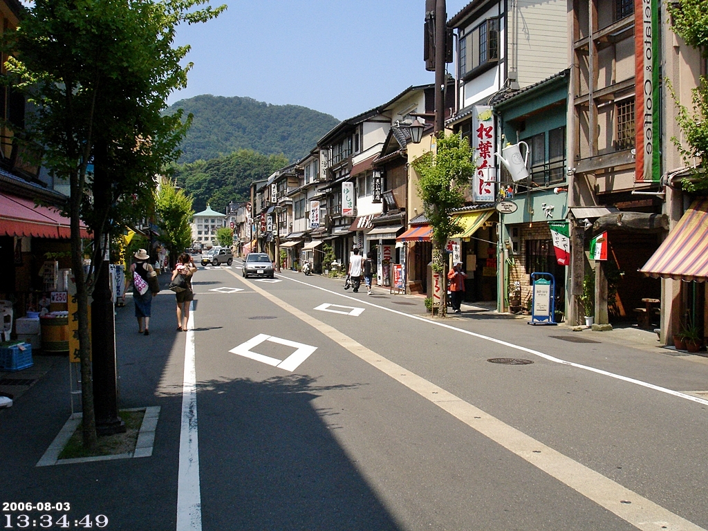 기노사키온천의 거리 모습입니다. 온천여관들이 즐비합니다.