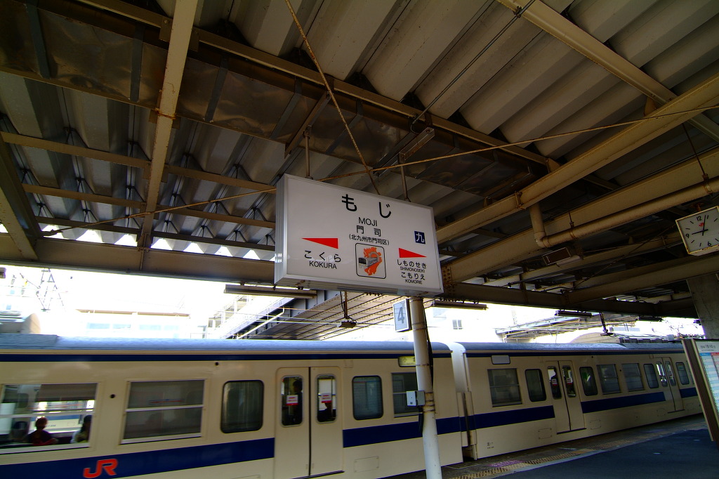 <사진 44> 모지역의 명판입니다. 여기에서 모지코 방면으로 분기되기 때문에 행선역이 3군데 나와 있습니다. 코모리에 역이 모지코 방면입니다.