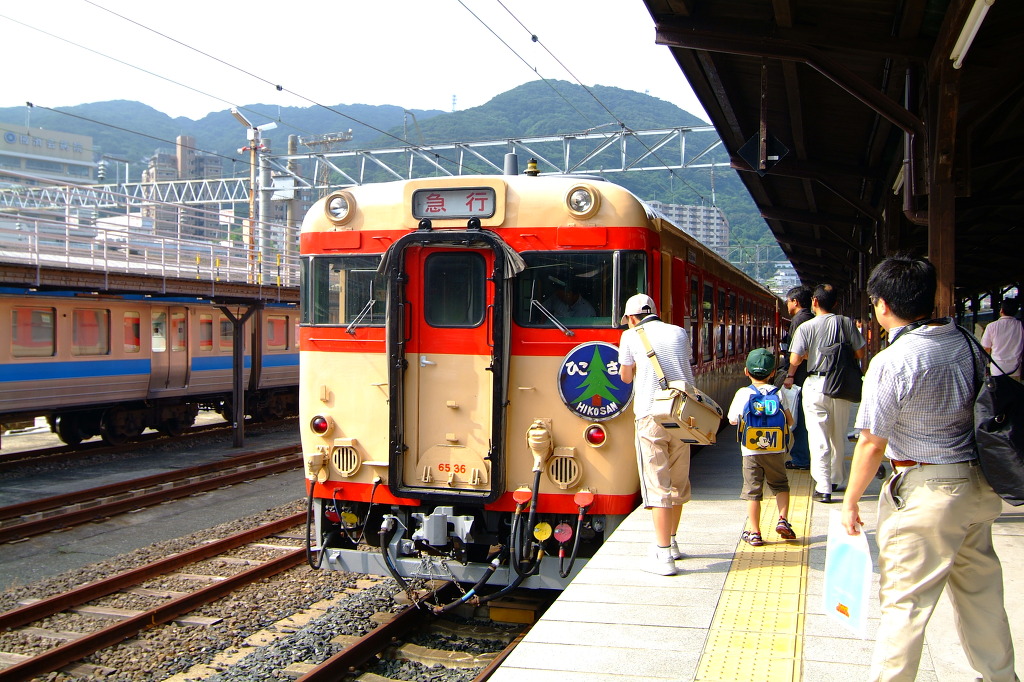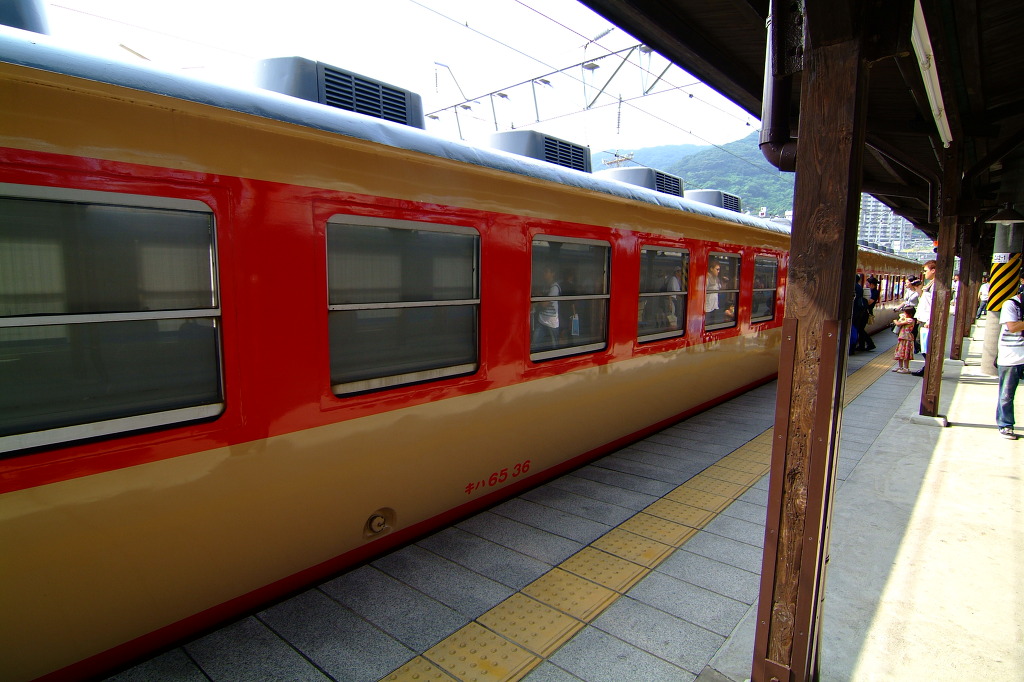 <사진 51> 이 녀석 때문이었군요. 1960.8.1~1980.10.1 기간동안 유후인~고쿠라~하카타를 운행했던 급행 히코산의 리바이벌 열차입니다. 다들 아주 사진찍느라 난리입니다.