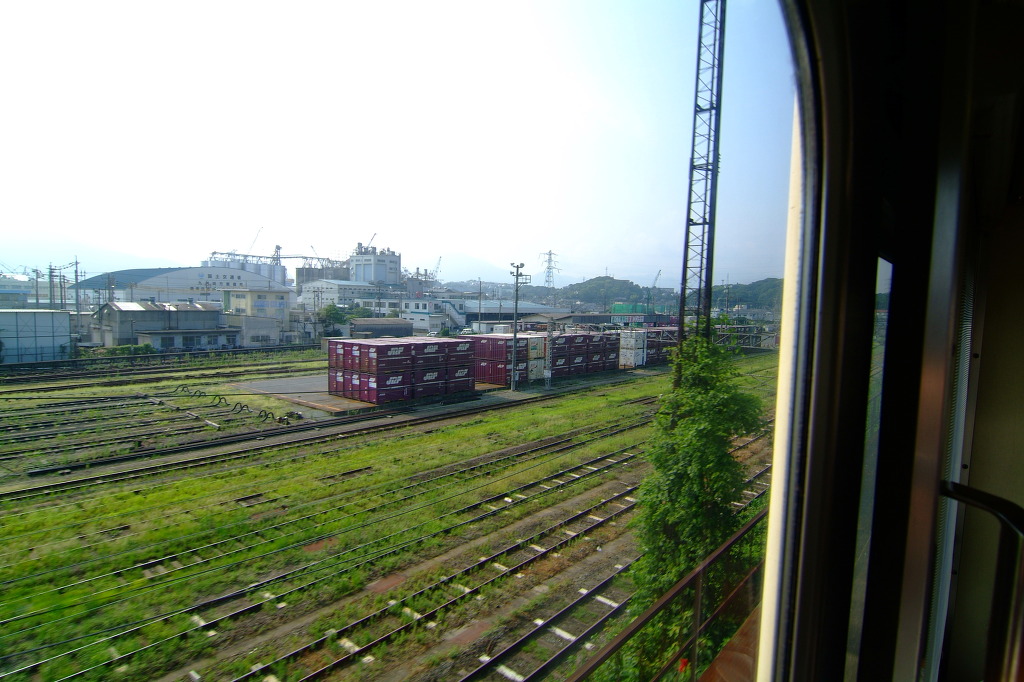 <사진 41> 시모노세키 역을 출발하자마자 이런 화물 터미널이 나옵니다. 근데, 잡초가 장난 아니군요. ㅎㅎ