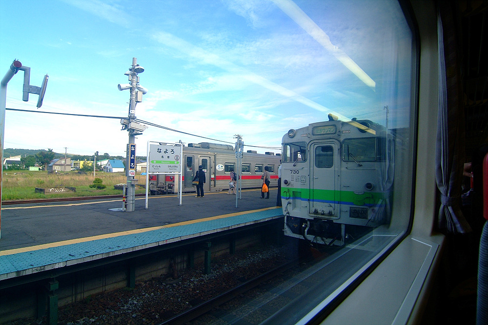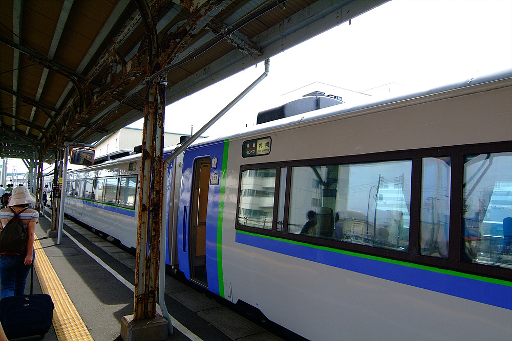 <사진 899> 열차를 타러 갑니다. 특급 사로베츠는 특급 수퍼 소야와 함께 삿포로~왓카나이간을 잇는 소야본선의 간판 열차로서, 수퍼 소야가 아침저녁 2왕복, 사로베츠는 낮 1왕복으로 운행합니다. 수퍼 소야와 달리 틸팅이 불가능한 구형인 키하183계 차량으로 운행하며, 이에 따라 수퍼 소야가 삿포로~왓카나이간을 5시간 이내(4시간 50분대)에 주파하는 것과 달리, 5시간 23분(상행), 5시간 41분(하행)의 소요시간을 기록중입니다. 본래 3량편성이나, 승객이 많은 기간에는 4~5량으로 증편 운행합니다. 제가 이용할 때에는 4량편성이더군요.