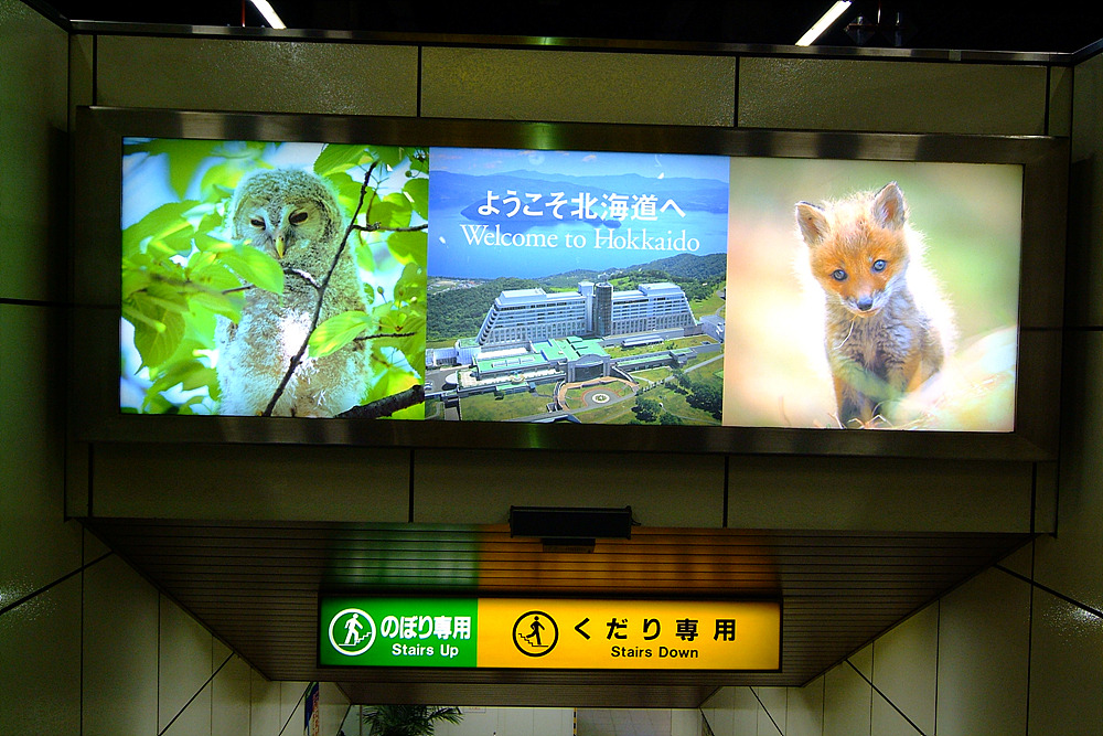 <사진 930> 삿포로역의 승강장 계단입니다. 홋카이도의 현관답게, 환영의 간판이 달려 있습니다.