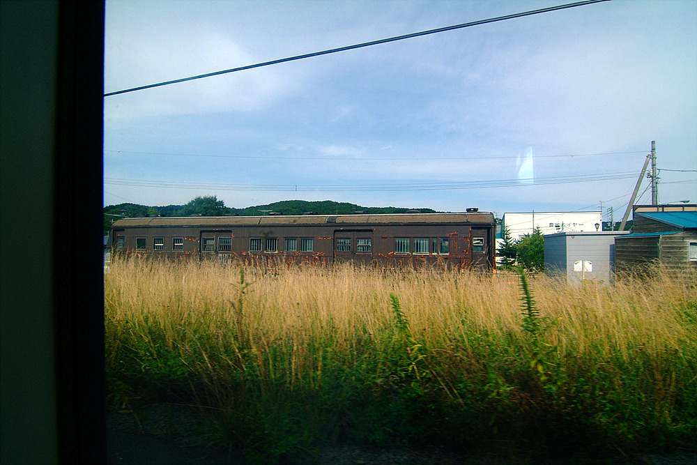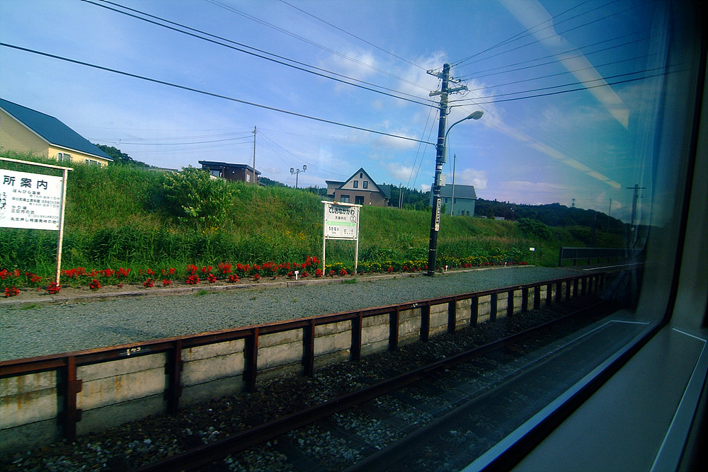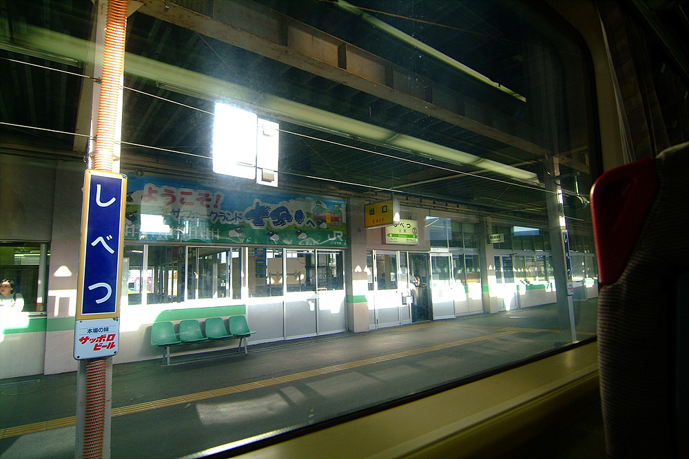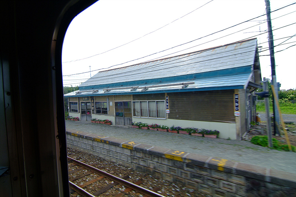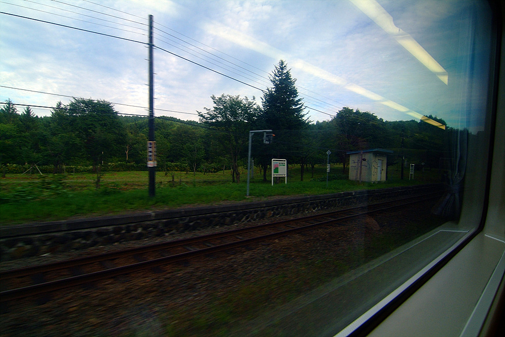 <사진 921> 시오카리 역입니다. 시오카리 고개에 위치한 역이라, 주변에는 인가가 거의 없고 이 열차도 물론 정차하지 않습니다. 이 역에서 과거에, 1909년 2월 28일, 고갯길에 위치한역 특성상,한 여객열차가 브레이크 고장으로 내리막길을 따라 폭주하기 시작했는데, 기독교신자이던 나가노 마사오라는 역무원이 자신의 몸을 레일과 차륜 사이로 던져 수많은 인명을 구한 일이 있다고 합니다.이 사건을 토대로 하여 '빙점'으로 유명한 소설가인 미우라 아야코가 '시오카리토오게'라는 소설을 썼으며 영화화도 되었다고 합니다.