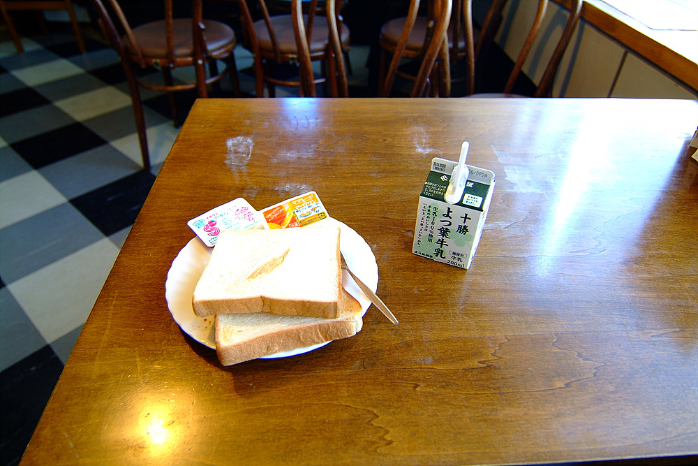 <사진 938> 1층의 찻집에서 토스트와 우유로 아침식사를 제공합니다(숙박비에 포함).