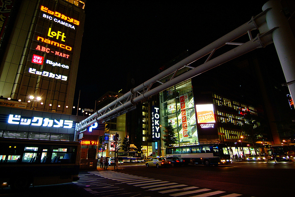 <사진 931> 역전의 야경입니다. 홋카이도라고 해도 삿포로는 일본내에서도 손꼽히는 대도시이니, 다른 대도시에 있을만한 것은 다 있는 것 같군요(빗쿠카메라, 로프트 등).