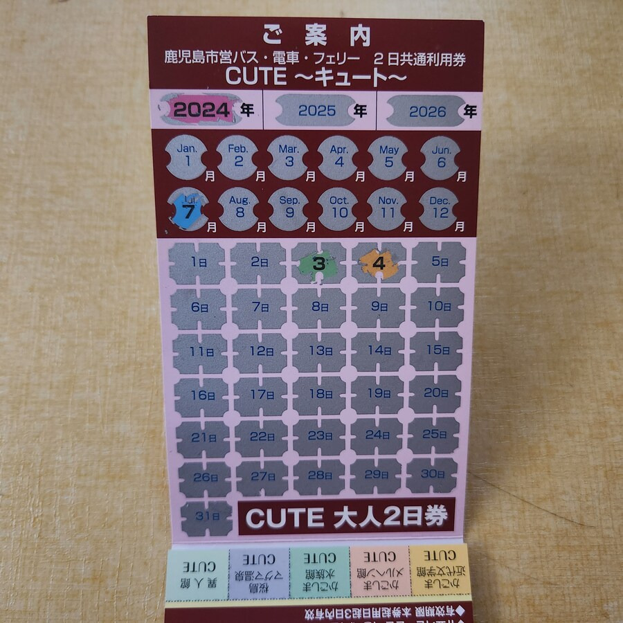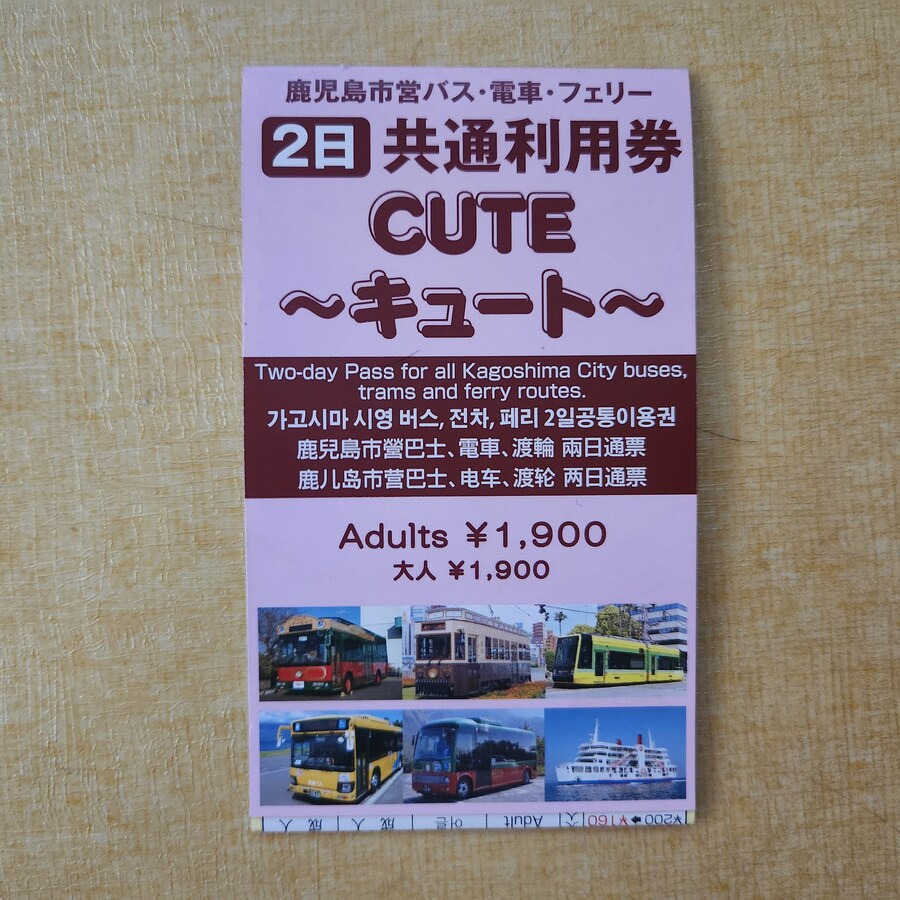 가고시마츄오역에 도착하자마자 구입한 큐트 패스 2일권. 가고시마 시내를 돌아다니기에는 이만한 패스가 없는 것 같습니다.