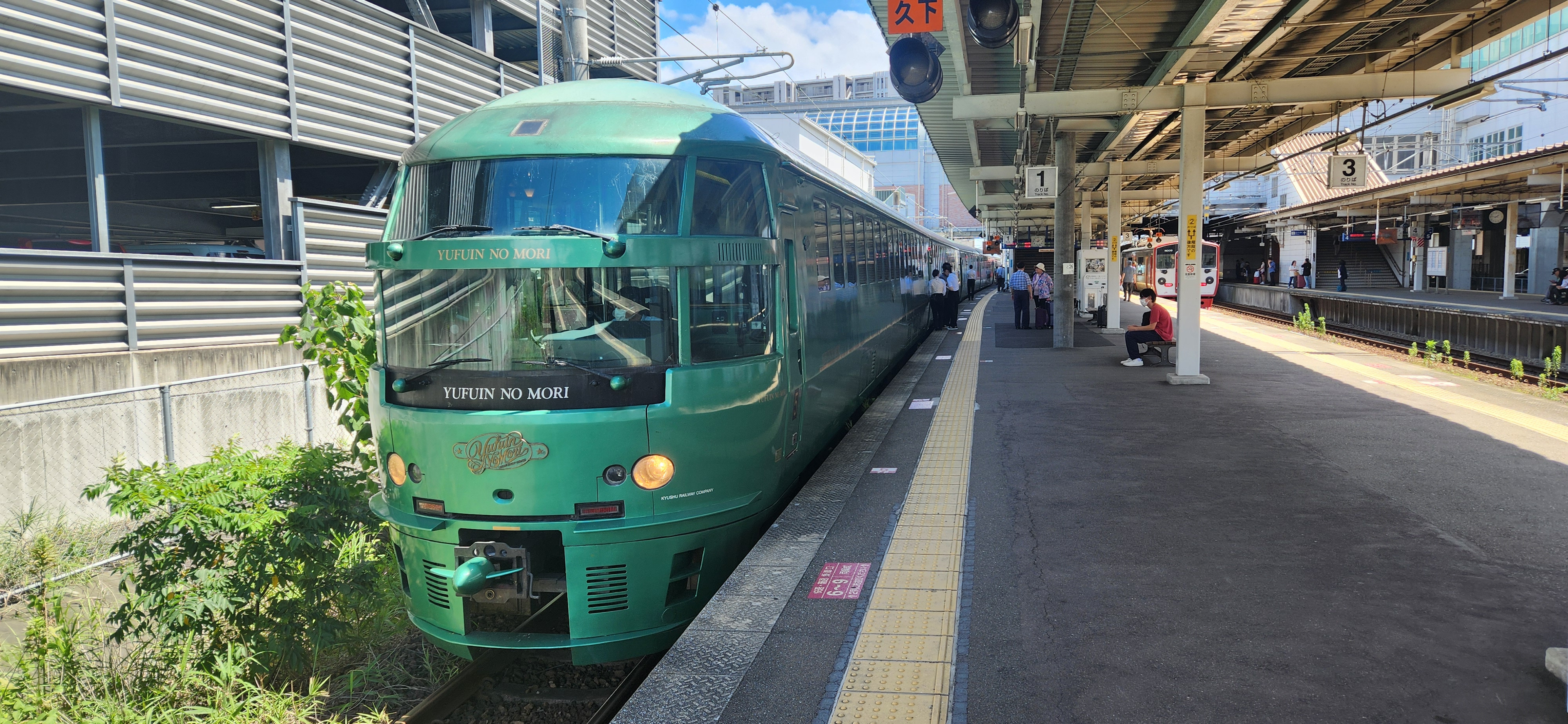 신칸센 환승을 위해 쿠루메역에서 하차합니다. 언제 봐도 아름다운 유후인노모리호 키하 72계 동차네요.