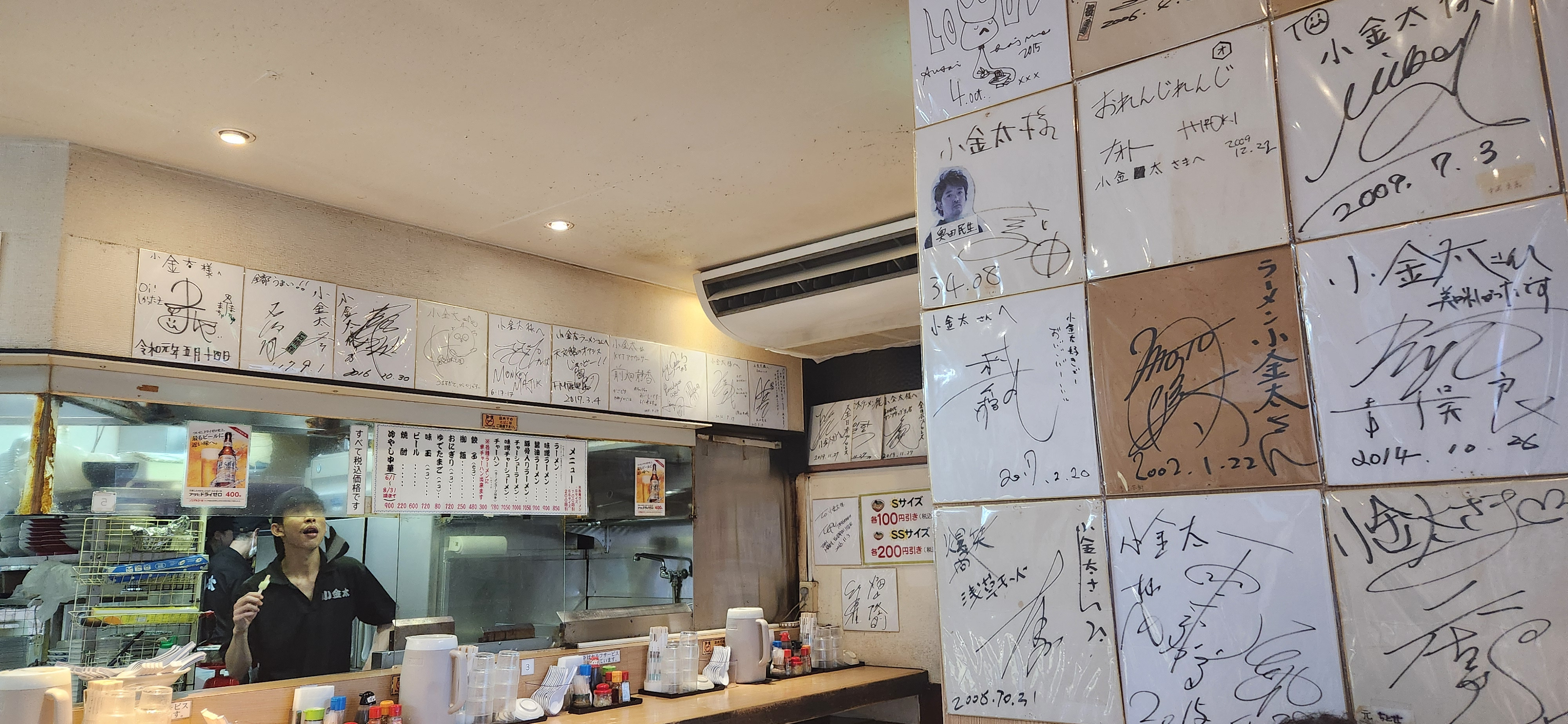 맛집을 검색하다가 라멘집으로 유명한 소금태라는 곳에 가서 라멘으로 저녁을 먹습니다. 맛집에서 흔히 볼 수 있는 유명인들의 사인으로 가게를 도배했네요.