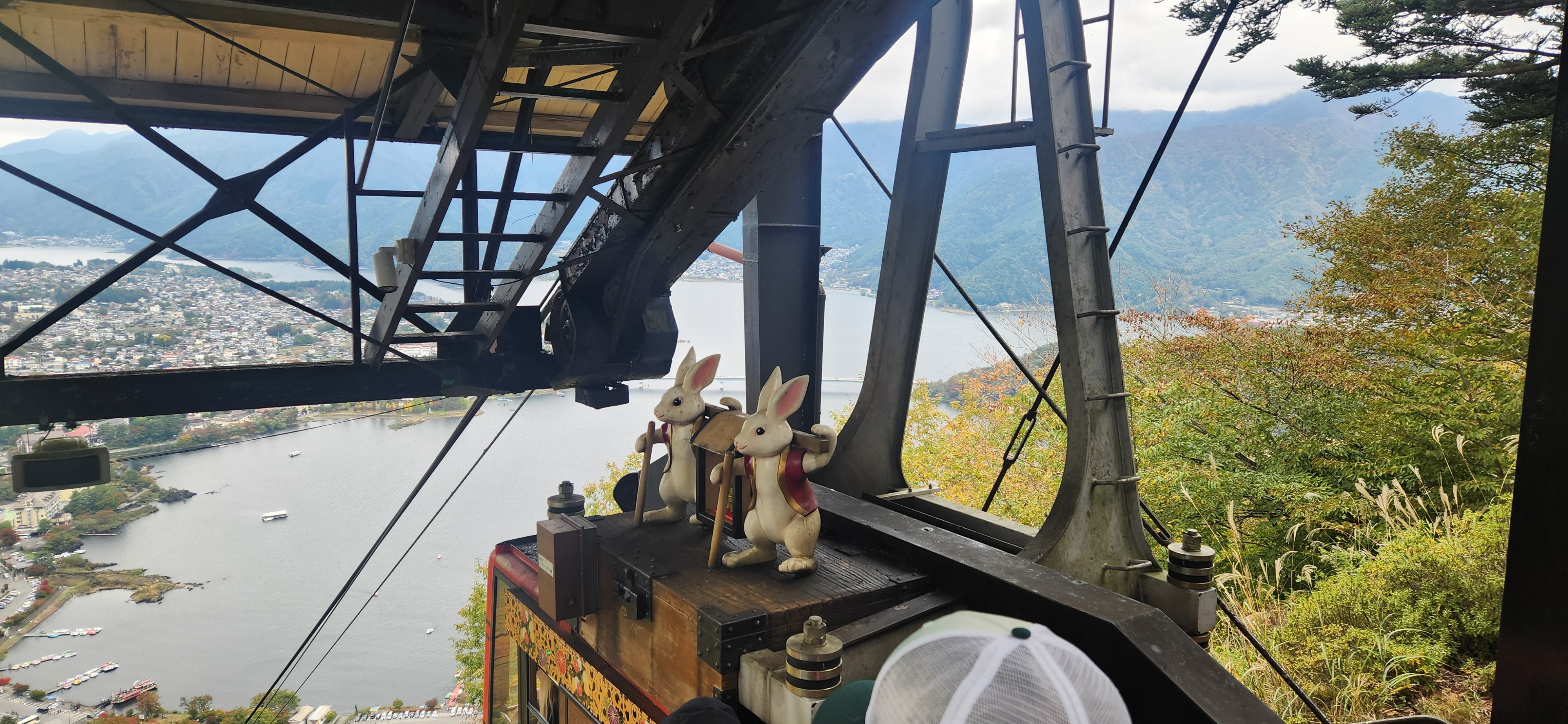 이제 다시 로프웨이를 타고 내려갑니다. 로프웨이 위의 토끼가 인상적이네요.