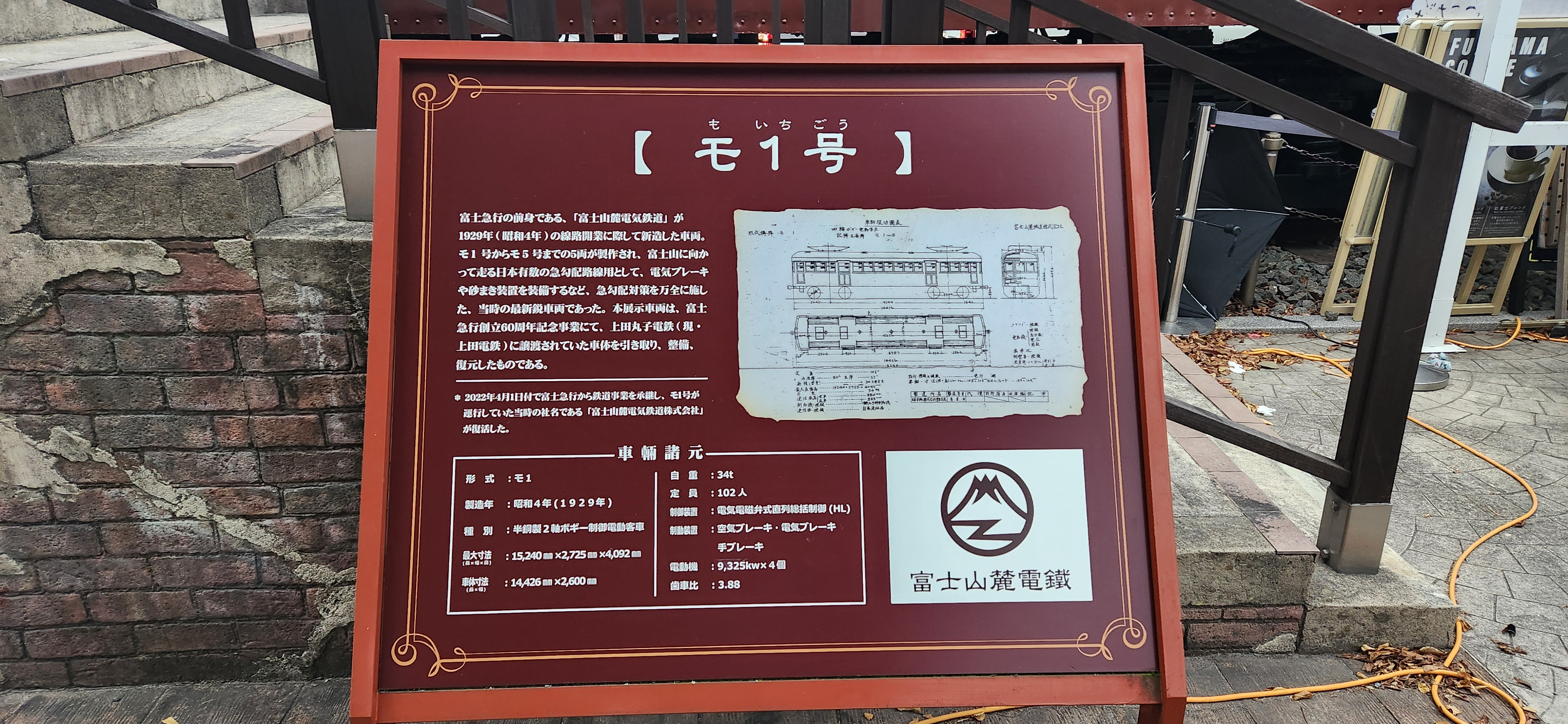 어떤 차량인지 궁금해서 번역기를 통해 읽어 보니 1929년 설립당시 후지산로쿠 전기철도에서 운용하던 차량이라고 하네요.