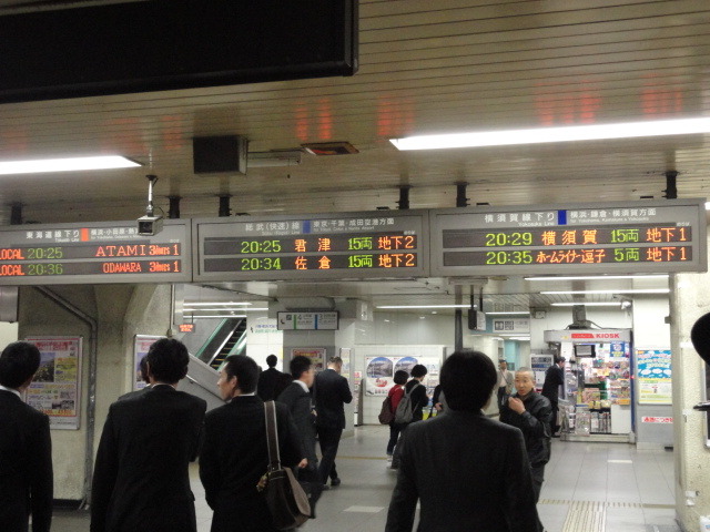 JR신바시역의 모습입니다. 평소가 어느수준인질 모르겠습니다만, 제가 보기에는 평상시 다이야로 운행되는 것처럼 보입니다.
