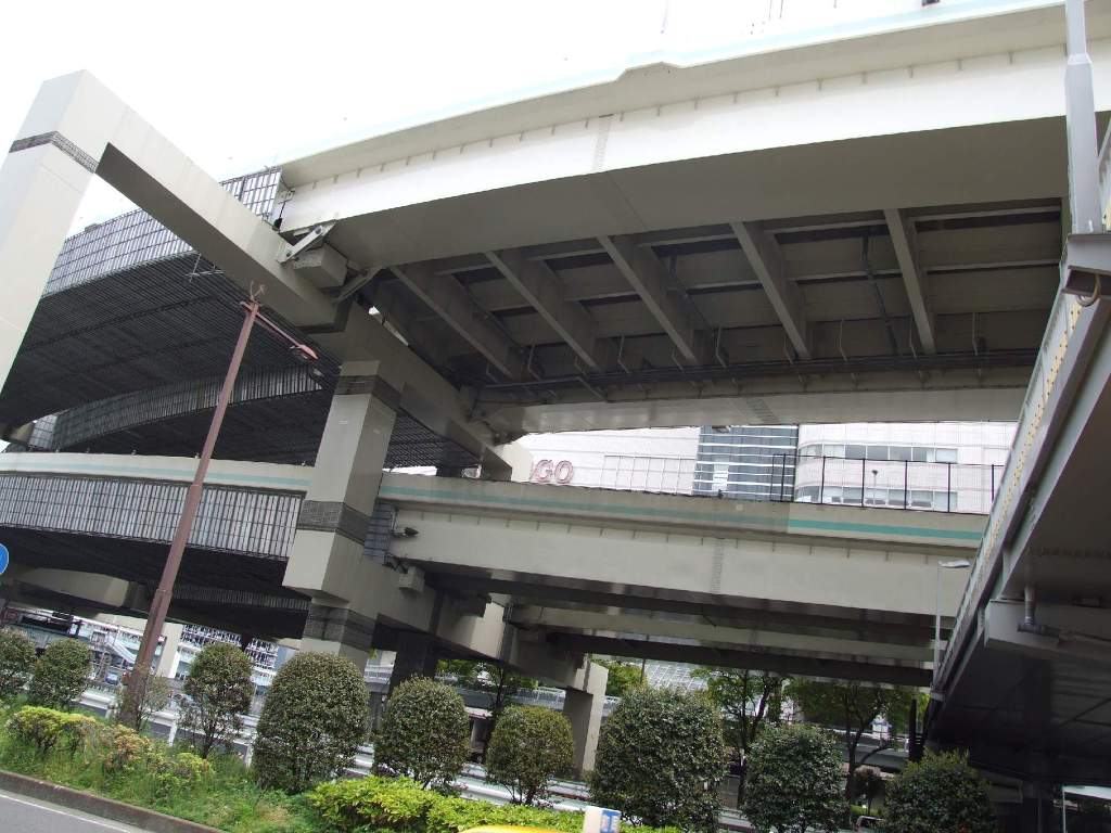 (역사 밖으로 나가니 고가도로가 강한 내진 설계를 한 모양으로 육중하게 보입니다. 일본에 온 것이 실감이 납니다.)