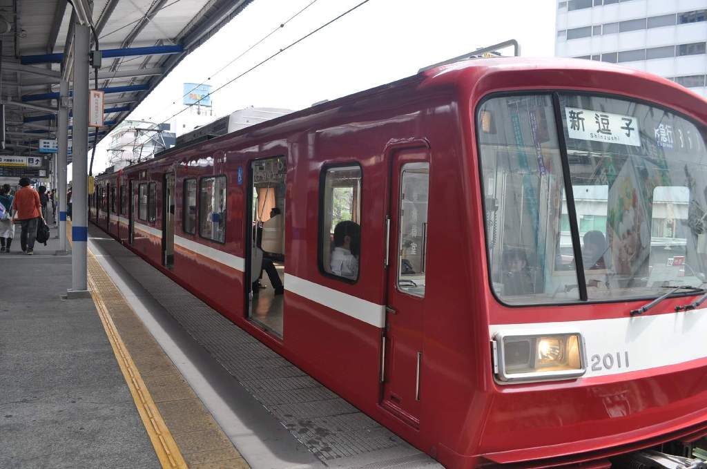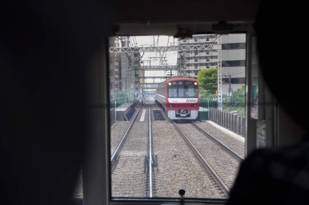 (바로 붉은색의 친숙한 차량이 들어오는데 케이큐 통근형 2000형인 것 같습니다. 그런데 사람들이 이 차량을 거의 타지 않고 있습니다. 저는 의아해서 이 차량의 차장에게 문의하니 5분 후에 오는 특쾌를 타라고 합니다.)