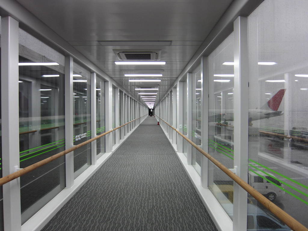 (셔틀 트레인을 타고 가야되는줄 알았는데 다행히 바로 게이트에서 연결이 됩니다. 그러나 통로가 엄청 깁니다. 비가 내리며 우울한 무드이지만 그래도 기분이 좋습니다.)