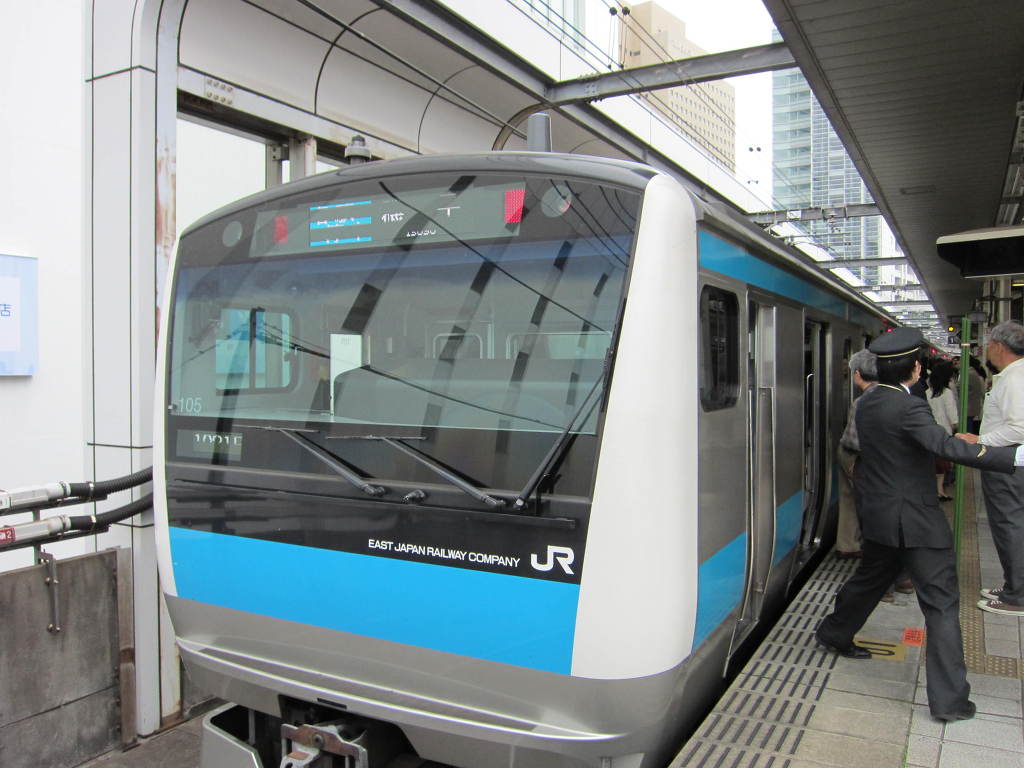 (다시 요코하마역으로 들어와 학회 발표를 해야 하는 퍼시피코 요코하마로 가게됩니다. 한 정거장 밖에 안 되는 사쿠라기쵸역으로 JR pass를 처음 사용합니다. 게다가 처음 타보는 케이힌 도호쿠선 E233계 1000번대 차량을 경험합니다. 승차감, 저소음, 쾌적한 실내-매우 만족스럽습니다. 차장이 발차음을 울리는 순간인데 사진에서 잘렸습니다.)