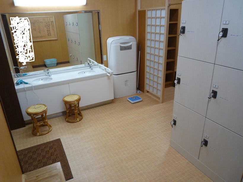 [(사진-35) 탕으로 들어가기 전 탈의실입니다. 라커도 큽니다. 이 탕이 만들어지기 이전에는, 당일치기 온천 이용할 때에는 귀중품들을 온천역에 내려서 개찰구를 나와 코인라커에 수납해야 했지만, 이 하토유를 이용하게 되면 그럴 필요는 없어졌습니다 ]