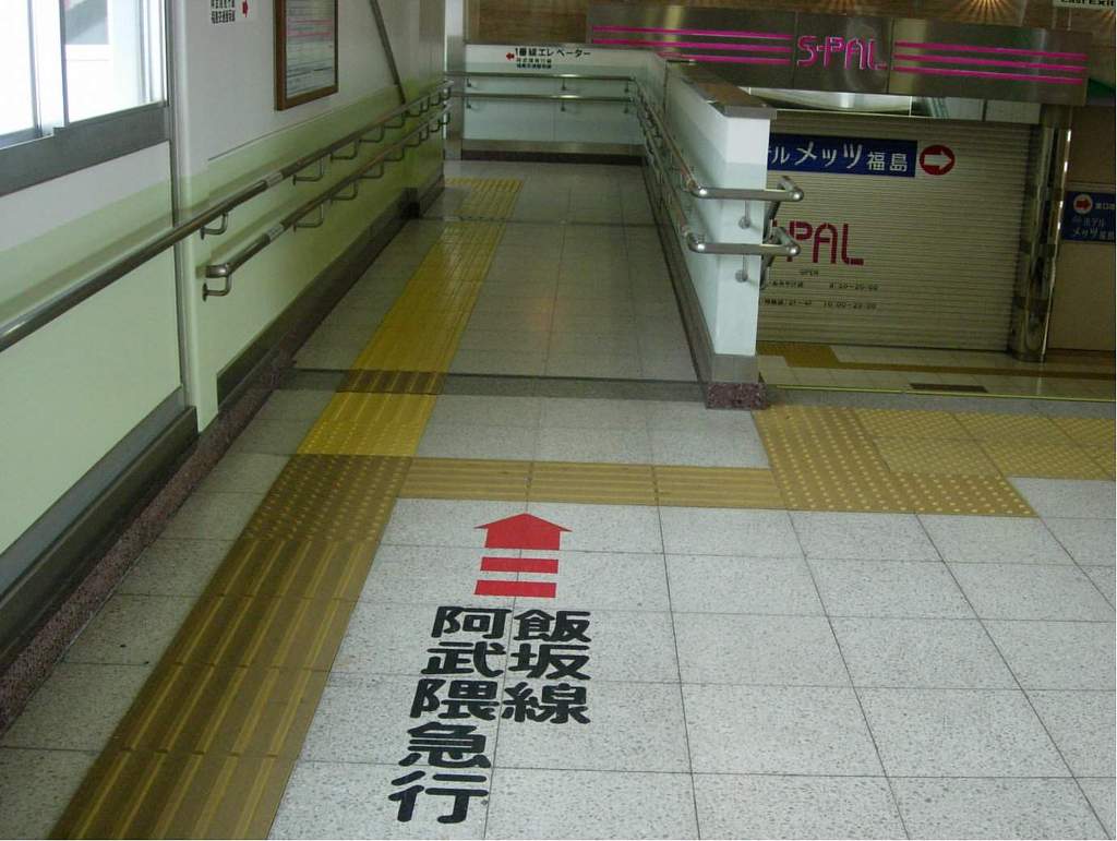 [(사진-04) 통로 바닥에 후쿠시마역에서 시발하는 두 가지의 사철 노선이 적혀 있습니다. 이이자카선, 아부큐마 큐코선. 이 두 노선 모두 카시오페이아님께서 각역정차 완주 & 리벤지 하셨던 노선들 입니다]