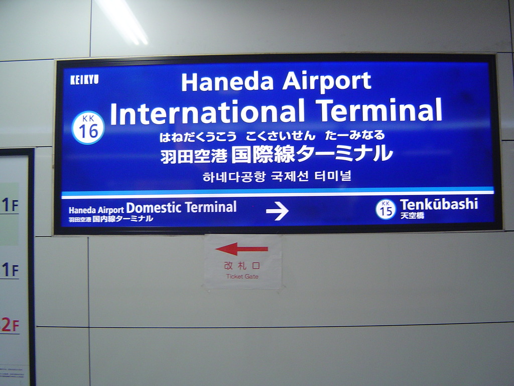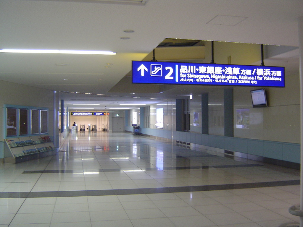 [(사진-05) 자동 개찰대를 통과하자 마자 보이는 케이큐선 하네다 공항역 2층 역사입니다. 도쿄 방면으로 가던, 요코하마 방면으로 가던 무조건 이 개찰대를 통과합니다. 우측에는 엘리베이터가 3대나 있고, 좌측으로는 긴 복도가 나 있습니다. 안내 표지판은 모두 같습니다.]