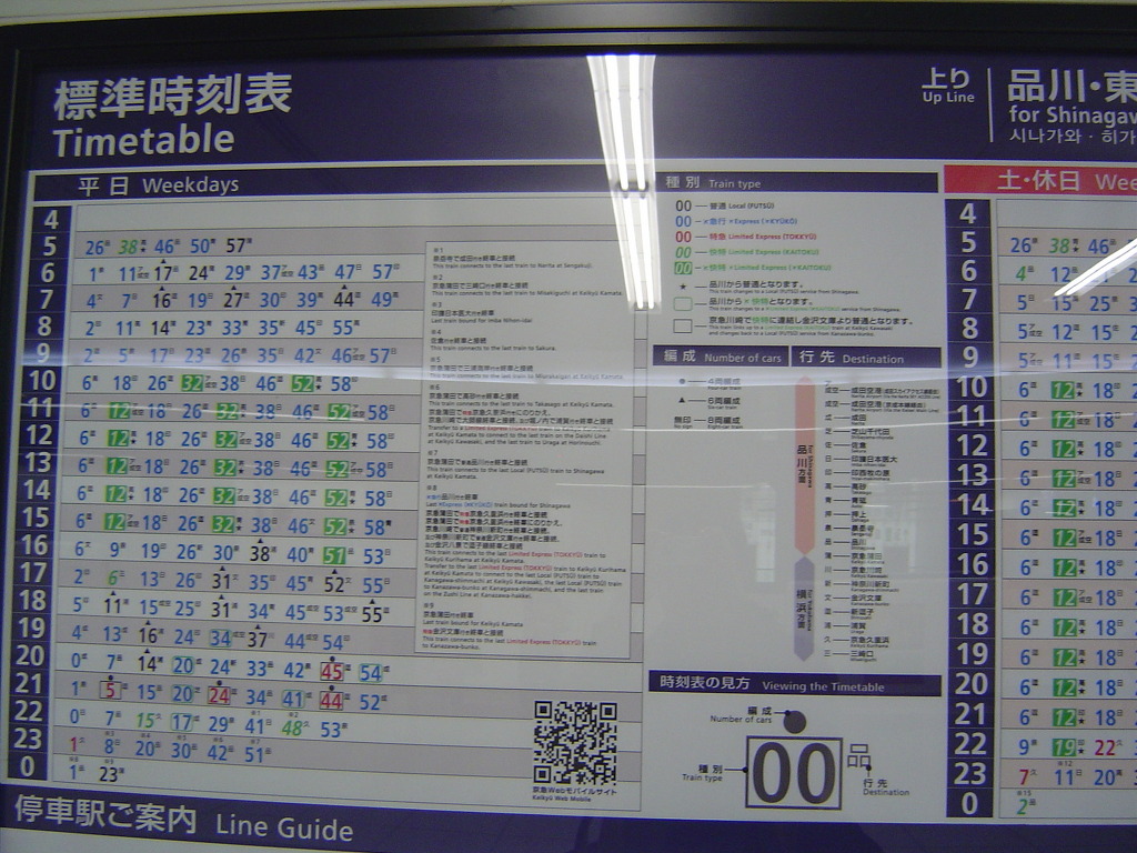 [(사진-10) 사실 첫 전동차가 들어 올 시간이 다 되었지만, 일단 이것저것 찍어보고 나중에 무엇을 찍었는지 확인하는 스타일로 탐사가 진행이 되고 있습니다. 무의식적으로 열차 시간표를 제가 촬영했었군요. 일본의 열차 시간표들은 상당히 정교하게 잘 제작되어 있는 것 같습니다.]