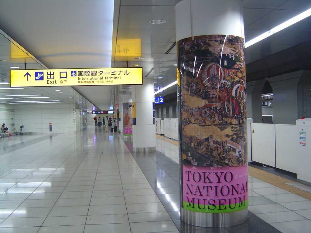 [(사진-12) 플랫폼 기둥에 형형색색 포스터들을 붙여 놓았는데, 도쿄 국립 박물관에서 어떤 전시 행사가있는가 봅니다]