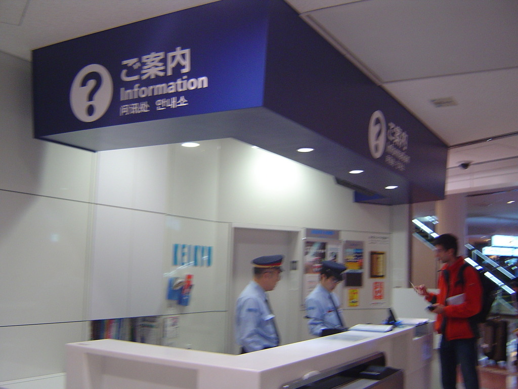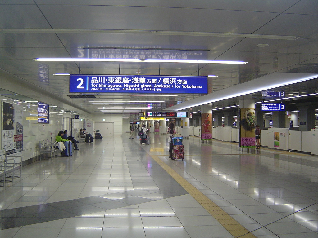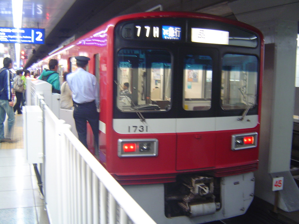 [(사진-04) 개찰구에 티켓을 넣고 급한 발걸음을 하는데, 미주에서 새벽에 도착한 미국인 관광객이 난처해 하며, 역무원과 의사소통을 하는데 영어가 잘 안 통해 난감해 합니다. 이 와중에 제가 도움을 줍니다. 이 외국인은 미타역으로 가야하는데, 어떤 전철을 타야할지 난감해 하고 있습니다. 케이큐 첫 차량은 시나가와역까지만 가므로 두번째 차량을 이용하도록 제가 설명하니 역무원과 그 외국인이 모두 고맙다고 인사합니다]