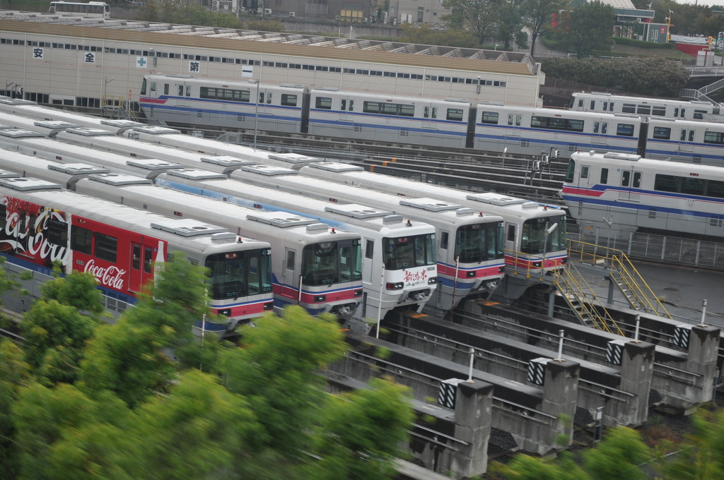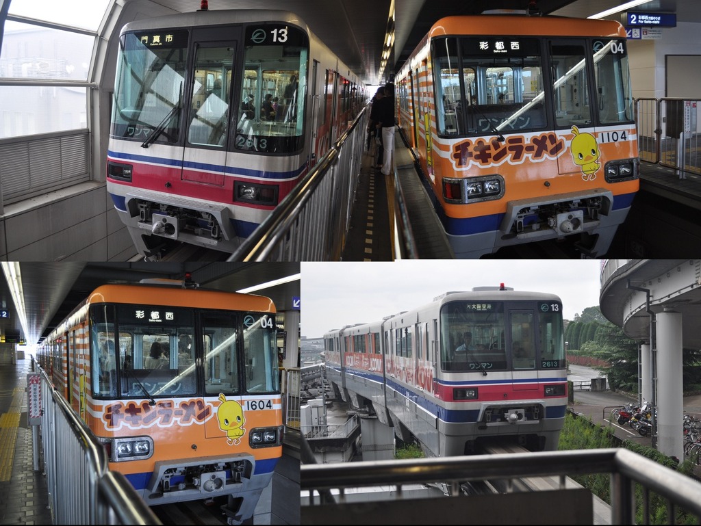 [(사진-30) 오사카 대학교로 가는 도중에 모노레일들의 편성 작전을 간단하게 나마 해 봅니다. 외장 디자인들이 멋있고 컬러풀하고 다양합니다]