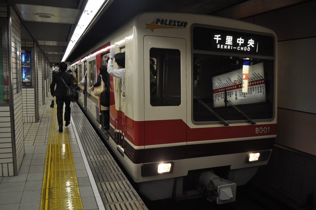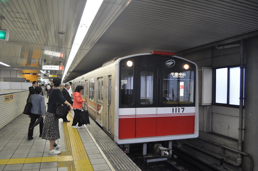 [(사진-35) 한큐 아와지역에서 편성 작전을 마저 하고, 오사카 지하철 텐카챠야행 사카이스지선 차량을 타고 내려갑니다. 이 지하철 노선으로 한큐 차량들도 직통 운행을 하고 있었습니다]
