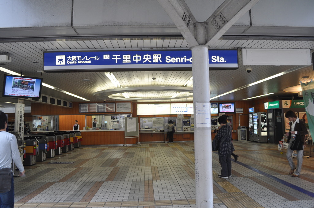 [(사진-26) 모노레일 센리 츄오역 입구와 개찰대입니다. 6년전에 이용해 보고 오랜만 입니다. 레인보우 카드로 개찰대를 통과합니다.]