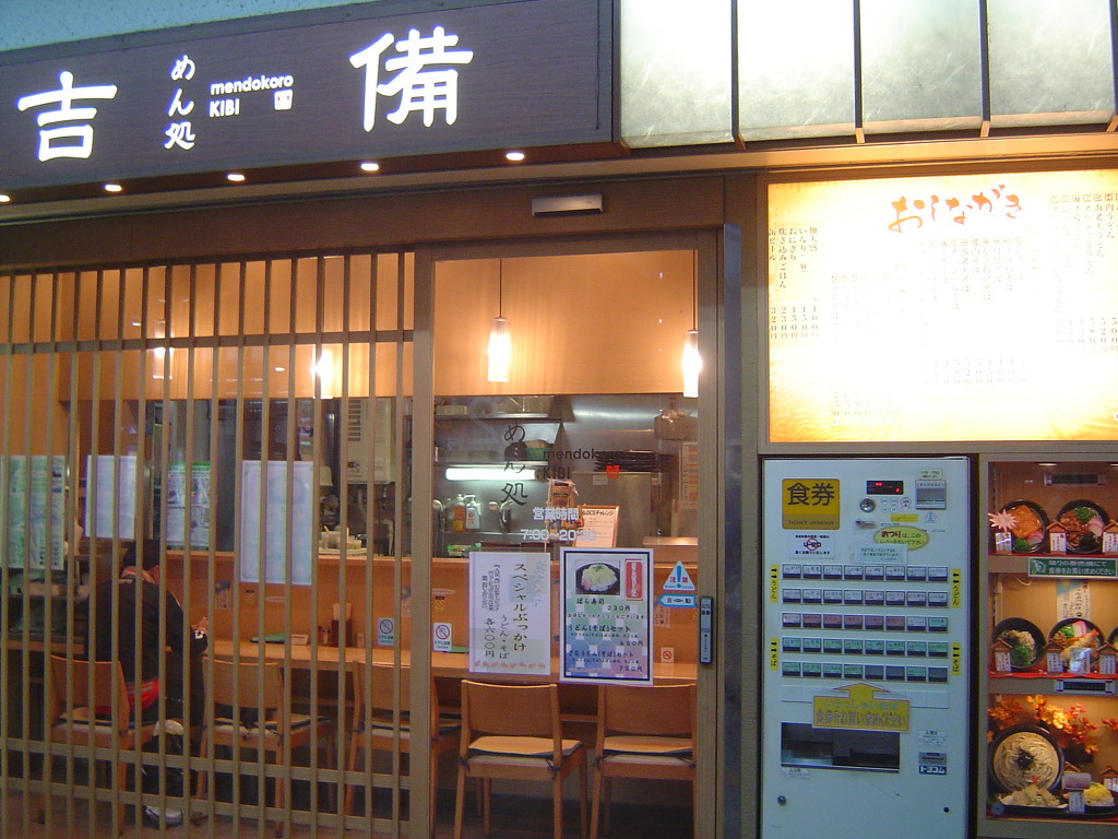 [(사진-11) N700 사쿠라를 일부러 이용하는 바람에 사쿠라 도착 시간까지 약 30분 여유가 있습니다. 다른 회원님들은 저돌적으로 편성 작전을 하겠지만, 저는 날씨 영향도 있고, 아침부터 탐사를 해서인지 벌써 지쳤습니다. 아침도 걸렀기에 배가 고프고 뜨거운 국물이 당깁니다. 오카야마역 개찰구 안에 있는 깨긋하고 현대적인 우동집에서 400엔 짜리 우동을 먹습니다]