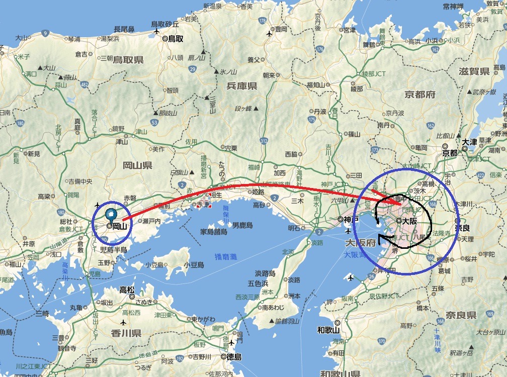 [(사진-01) 올빼미 4일 여행의 3일째를 맞이합니다. 입국 & 1일째는 도쿄 권역, 2일째에는 나고야 권역이었습니다. 당초 계획으로는 3일째 오늘은 오카야마 대학 출장으로 시작하여 큐슈 하카타까지 가서 밤에 선라이즈로 돌아오는 계획이었는데, 무릎 부상으로 일정을 변경하여 오사카로 가서 철도탐사와 역전온천 탐사를 하고자 합니다.]